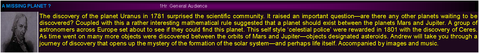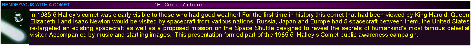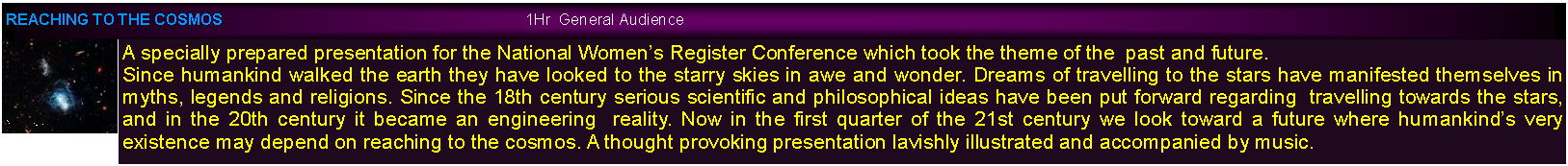 Text Box: Space exploration and astronomy is a very large topic and some organizations prefer to have a targeted presentation, presentations may be prepared on specific space missions. Just let me know of your requirements.