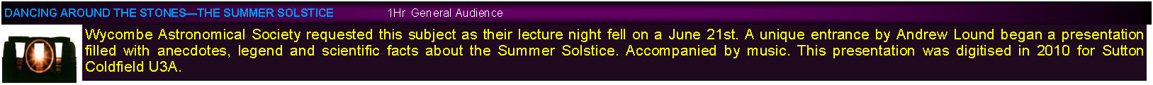 Text Box: Below are examples of custom & speciality presentations, many of which may be adapted for future use. Also listed are presentations from the days of  35mm slides.