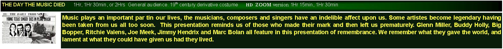 for the future. History presentations should capture the feel of the period of the subject and should look at the