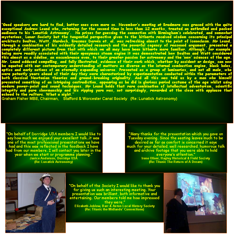 Text Box: HISTORY  PRESENTATIONS CLIENT REVIEWS