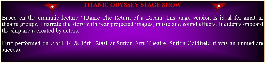 Text Box: Cast of  ‘Titanic  Odyssey’  staged at Sutton Arts Theatre